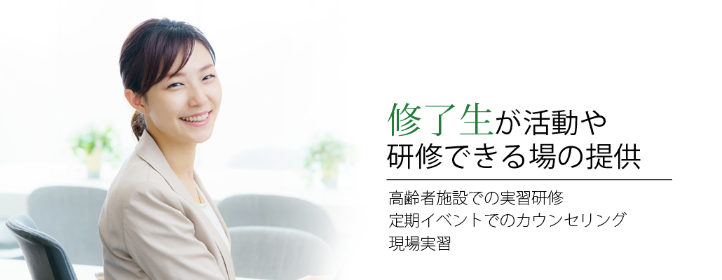 実際に学びを活かす場として、介護施設などのボランティア実習先が多数あります。どのようなかたちでボランティアを行うかなど、実際に自身で始めるための知識を得ることも可能です。